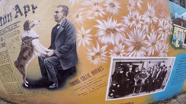 퍼레이드 : 실버튼 벽화 중 ‘기적의 개’ 보비를 묘사한 부분 (출처 KOIN)