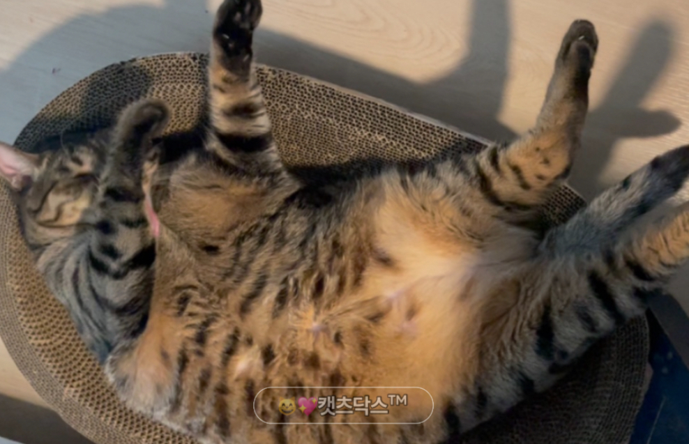 고양이가 배를 드러내고 누워있으면 너무 귀엽죠. 그런데 배를 만지려고 하면 갑자기 물거나 할퀴는 경우가 많습니다. 배를 보여주는 건 “만져달라”는 신호가 아니라 “너를 신뢰한다”는 표현이에요. 야생에서 배는 가장 취약한 부위라 적에게 절대 보이지 않습니다. 우리 고양이가 배를 보여준다면 그것만으로도 최고의 신뢰 표현이니, 억지로 만지지 마세요.