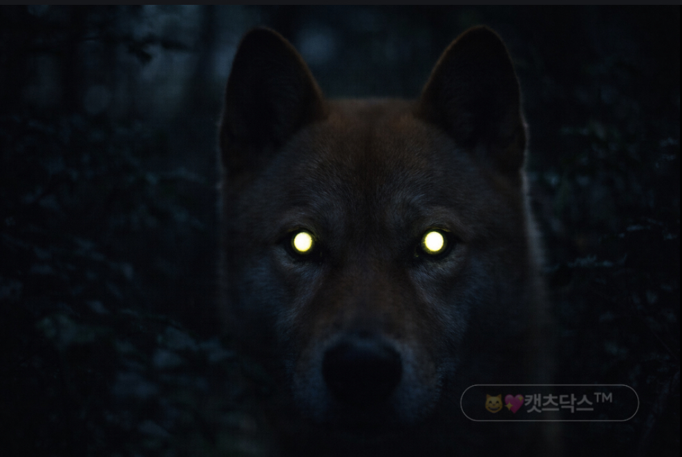 개의 눈에는 간상세포(어둠에서 빛을 감지하는 세포)가 인간보다 훨씬 많습니다. 또한 망막 뒤에 ’타페툼(tapetum lucidum)’이라는 반사층이 있어 들어온 빛을 한 번 더 반사시킵니다. 밤에 개 눈이 빛나는 이유가 이것입니다. 마치 자동차 헤드라이트처럼 빛을 증폭시키는 장치가 눈 안에 내장된 셈이죠.
