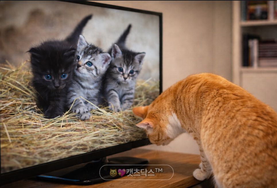 고양이가 TV 화면 가까이 다가가 손으로 톡톡 치거나 화면 뒤를 확인하는 행동, 많은 집사들이 경험했을 것입니다. 왜 이런 행동을 할까요?