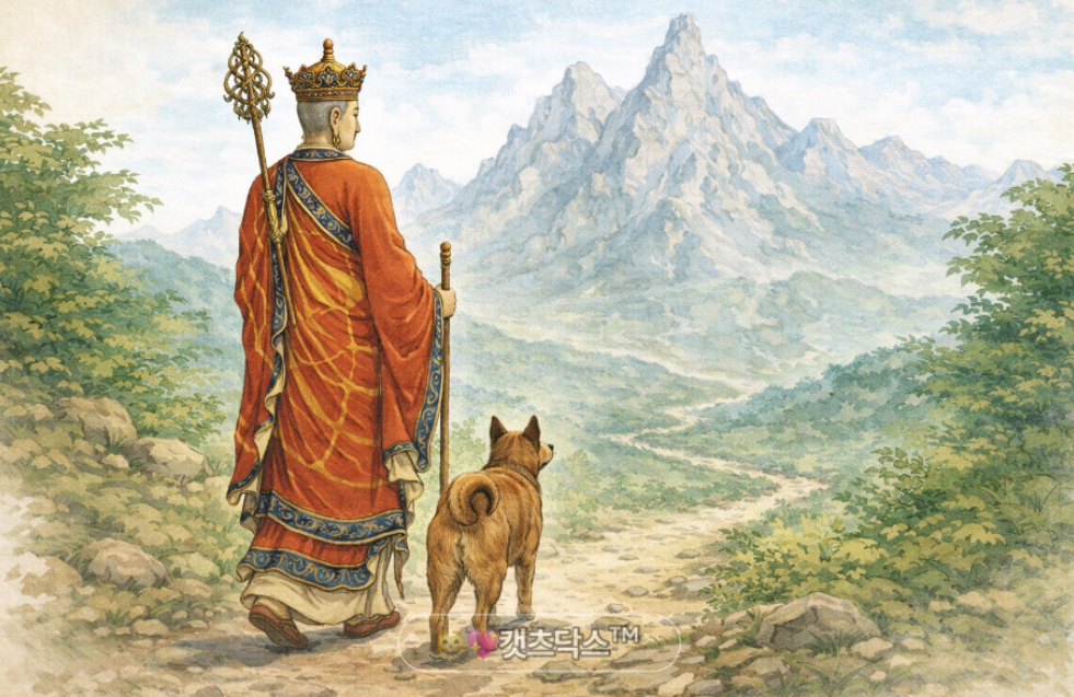 김지장은 이 긴 여정에 동반자 하나를 데려갔다. 바로 개 선청이었다. ‘선청’이라는 이름은 ‘잘 듣는다’는 뜻이다. 단순히 집을 지키거나 사냥을 돕는 가축이 아니라, 함께 길을 가는 동반자로서 고유한 이름을 받은 것이다. 이것이 바로 오늘날 우리가 말하는 ‘반려동물’의 개념과 정확히 일치한다.