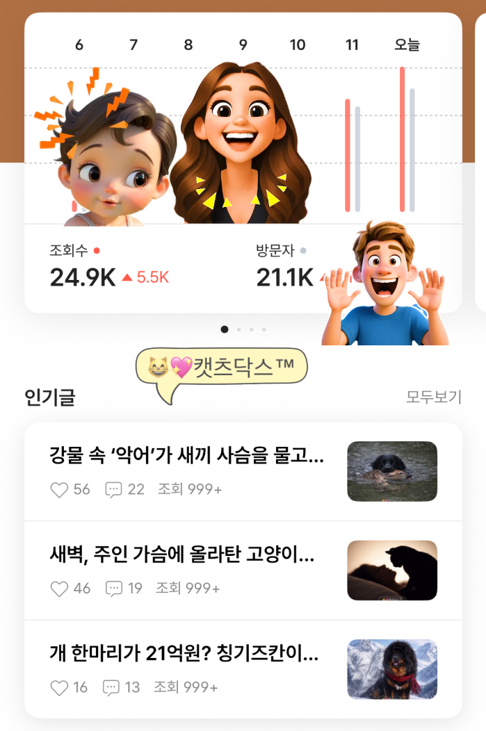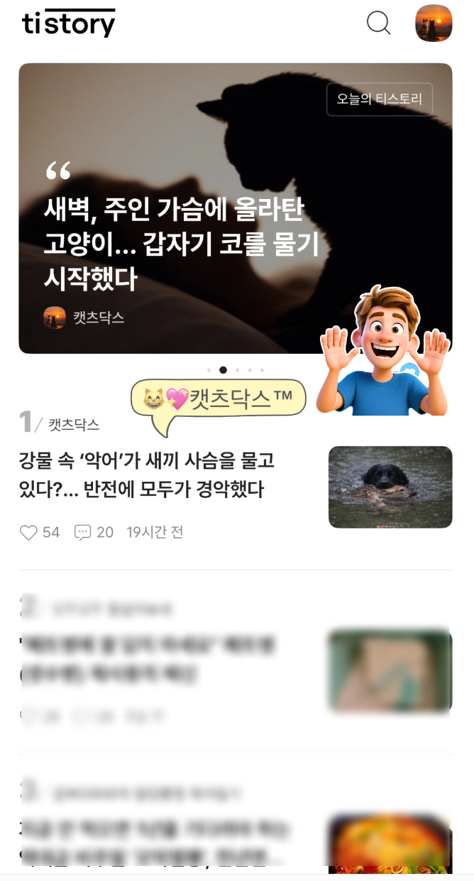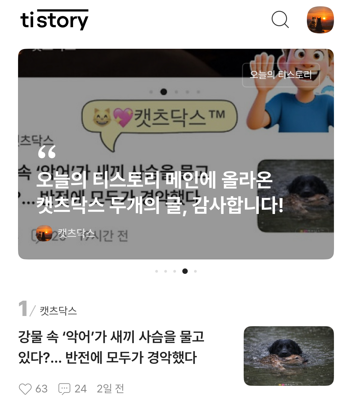 오늘의 티스토리 메인에 올라온 캣츠닥스 두개의 글, 감사합니다!