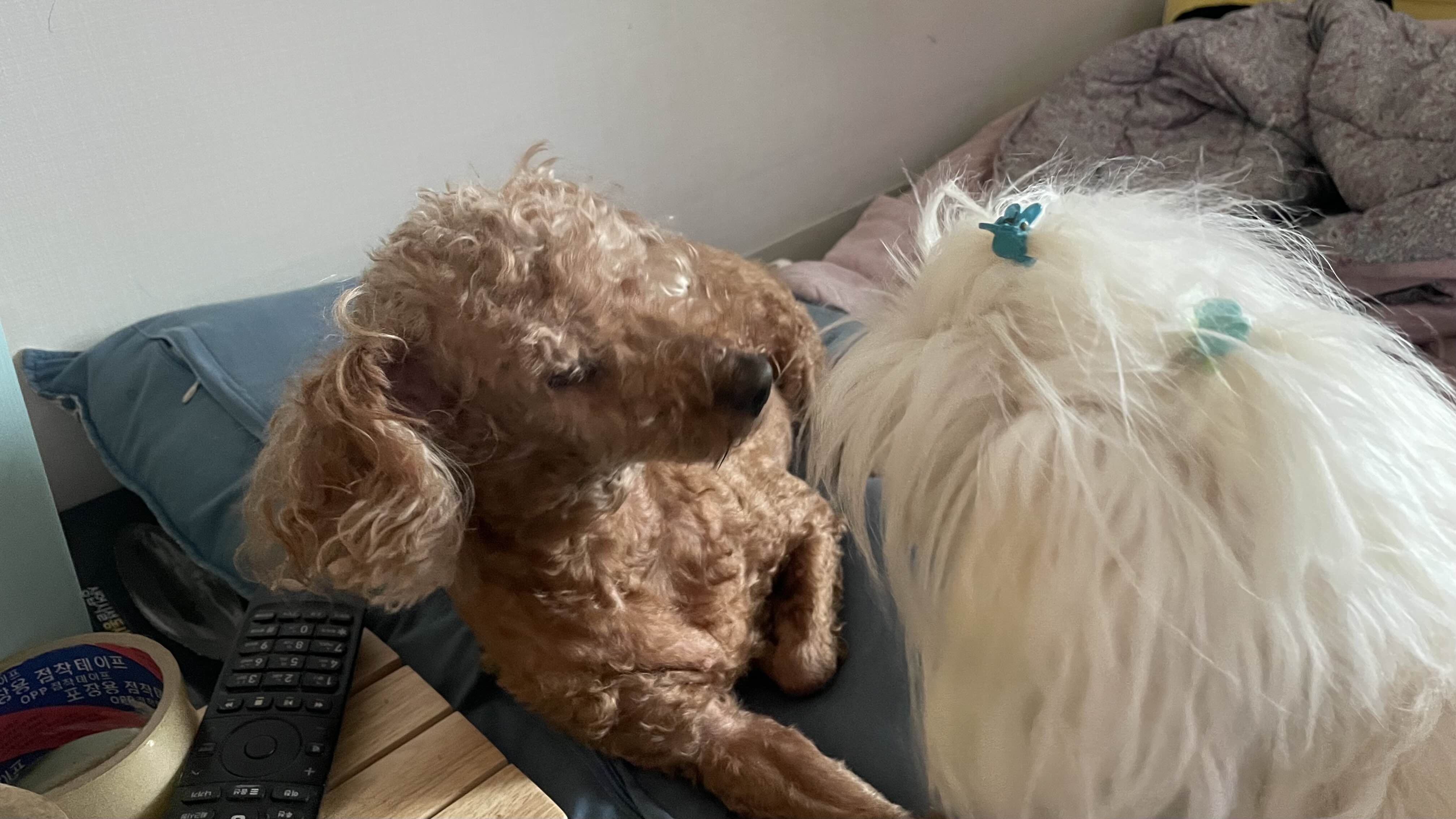 다정하게 뽀뽀해 주는 초코, 둘은 사이가 너무 좋답니다.