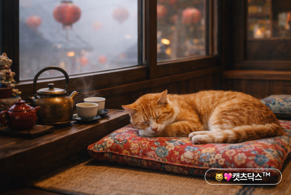 좁은 계단길을 따라 올라가면 산중턱에 오래된 전통 찻집들이 옹기종기 모여 있습니다. 그중에서도 차오차오 찻집은 조금 특별했습니다. 바로 고양이 한 마리 때문이었죠.