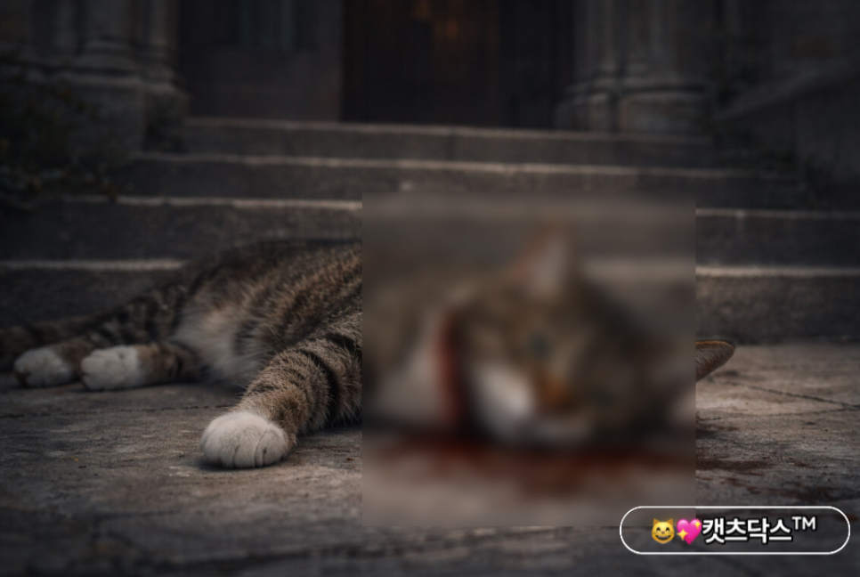 고양이는 심한 출혈로 이미 의식이 희미했고, 화살은 목을 관통해 생명이 경각에 달한 상태였습니다. 누군가 이 무고한 생명에게 잔인한 공격을 가한 것이었습니다.