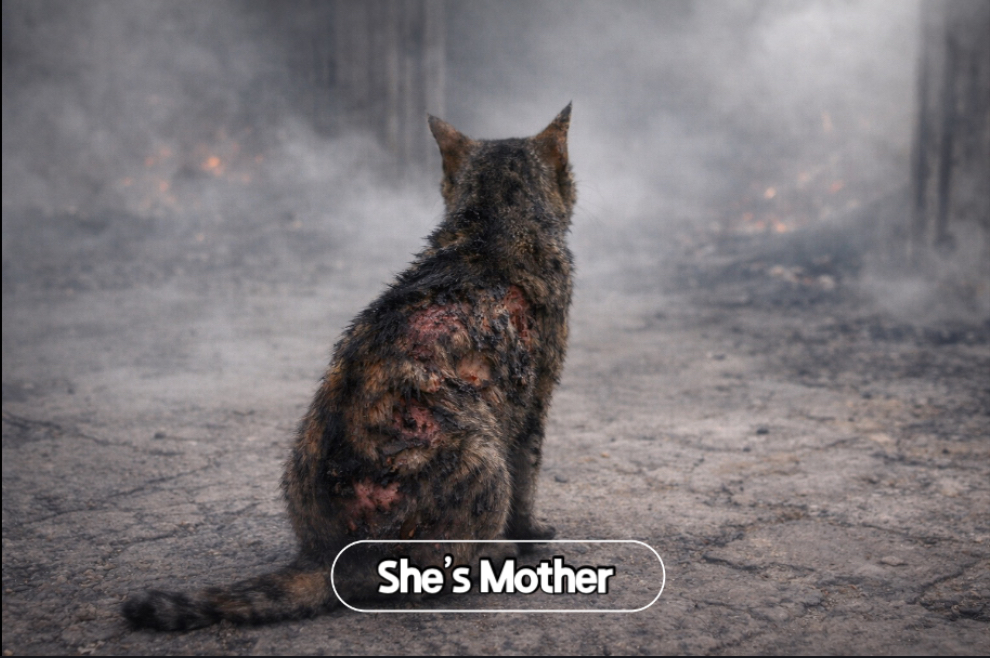 이 과정을 다섯 번 반복했습니다. 마지막 새끼를 구출했을 때, 스칼렛은 더 이상 서 있을 수조차 없었습니다. 털은 거의 다 타버렸고, 눈은 심하게 부어올라 거의 보이지 않는 상태였습니다. 발바닥은 화상으로 물집이 잡혀 있었습니다.